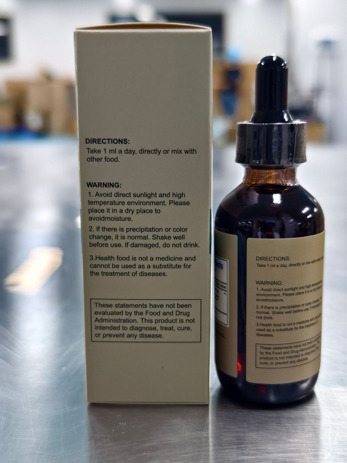 Packaging: Glass dropper bottle with scale